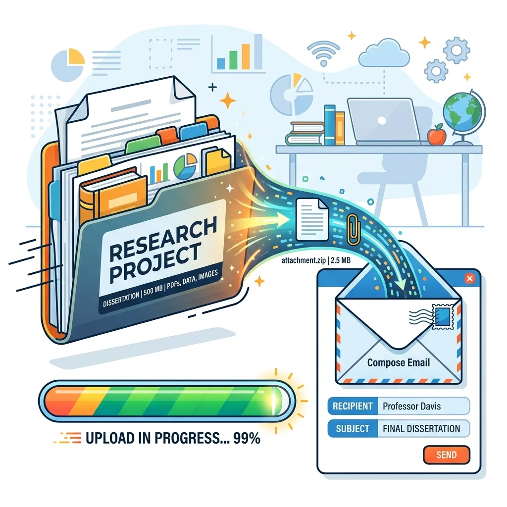 معظم بوابات الجامعات مثل Blackboard وClassera وBanner تفرض حداً أقصى لحجم الملفات المرفوعة، عادةً بين 10 إلى 25 ميجابايت. عندما يتجاوز بحثك هذا الحد — خاصةً إذا تضمن صوراً أو رسوماً بيانية — ستحتاج لضغطه أولاً.